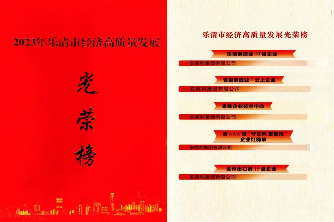 2023年1月30日上午,乐清市经济高质量发展大会在市行政管理中心召开。安德利集团受邀参会,一批对乐清市经济高质量发展有突出贡献的单位和企业荣登《2023年乐清市经济高质量发展光荣榜》。