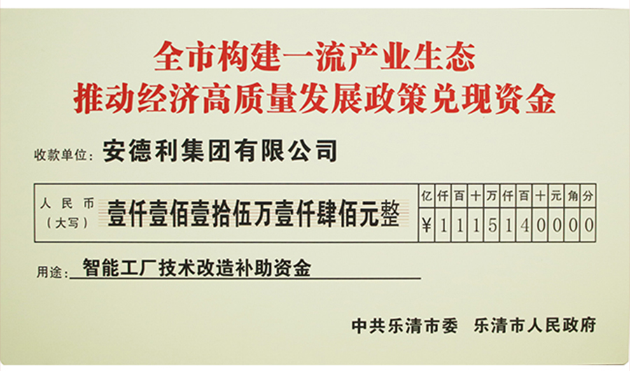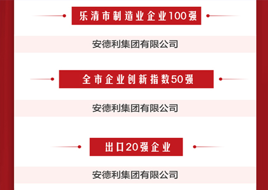 大会表彰了一批为乐清经济发展做出了贡献的先进企业和先进个人。安德利集团在此次大会上荣获4个奖项并公布在《光荣榜》上,分别是:2023年度乐清制造业100强(位列第23名),2023年全市企业创新指数50强(位列第19名)、2023年度出口20强企业(位列前10名)、全市构建一流产业生态 推动经济高质量发展政策兑现资金(智能工厂技术改造补助资金兑现)。