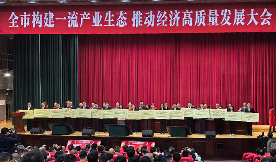 2024年2月22日,乐清市经济高质量发展大会在市行政管理中心隆重召开。市委书记徐建兵出席会议并作重要讲话,市委副书记、市长戴旭强主持会议。安德利集团受邀参会,一批对乐清市经济高质量发展有突出贡献的企业和个人荣登《2024年乐清市经济高质量发展光荣榜》。